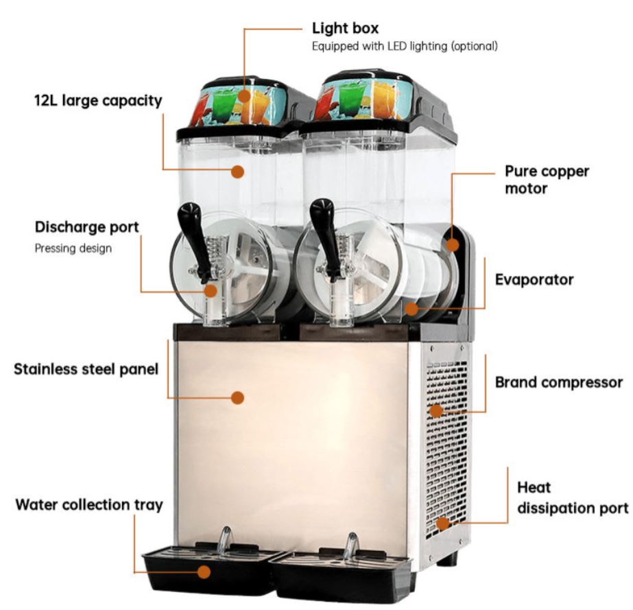 | Application Fields | Dispense Slush Drinks, Granita Drinks, Frozen Cocktails, Fruit Juices |
